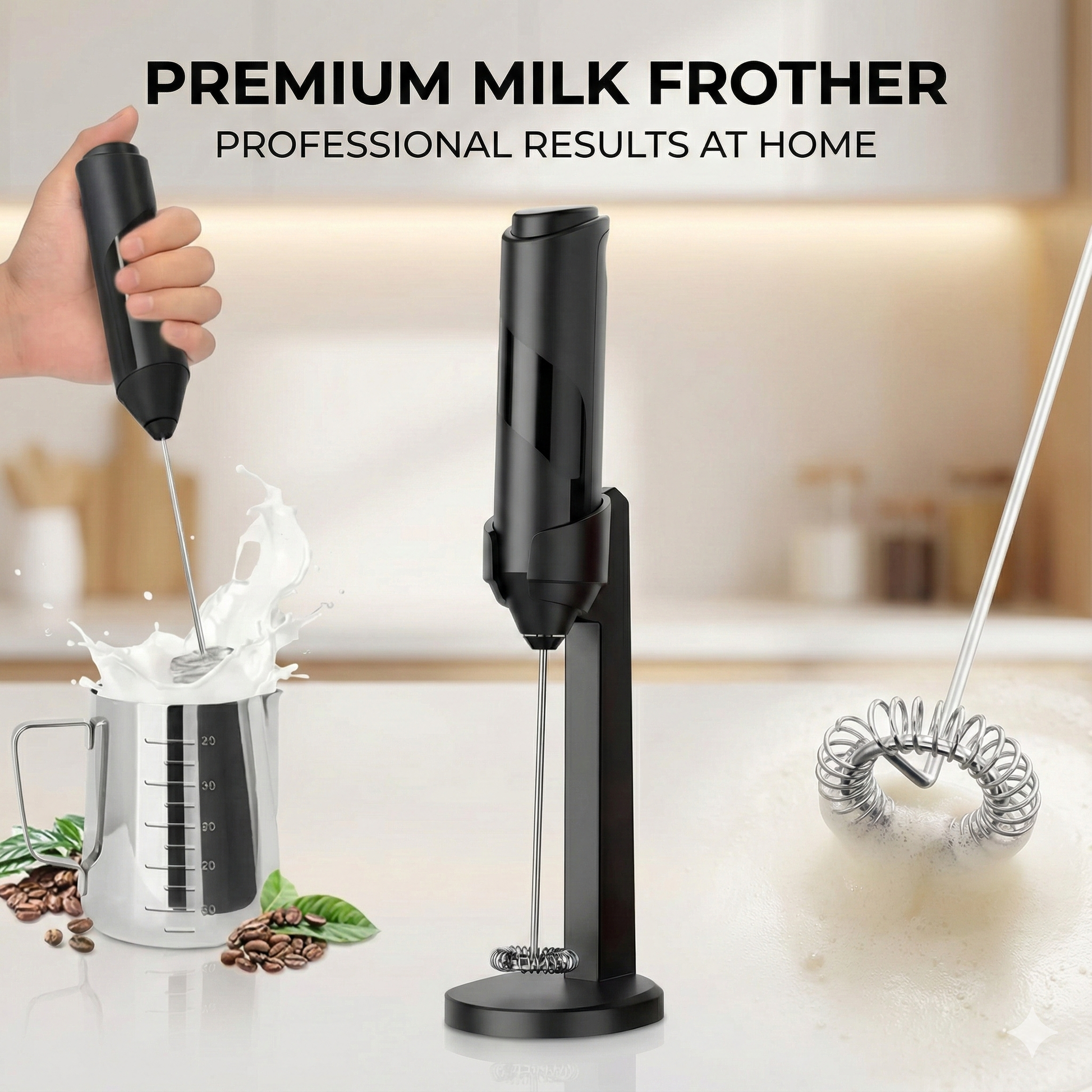 Perfect for milk, eggs, coffee, matcha, and moreβyour all-in-one kitchen whisking partner.