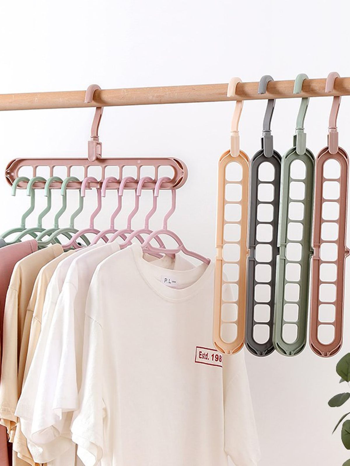 Holds up to 9 garments on a single hanger, instantly freeing up valuable closet space.
